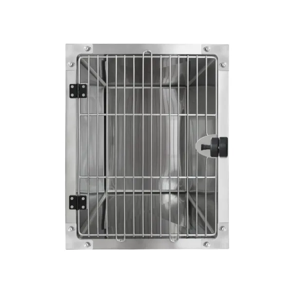Our modular designed stainless steel veterinary cages (rounded corners) are constructed from high-quality 304 stainless steel, which will ensure long lasting performance, easy to maintain and keep the space clean. There are no joins within the cage, the rounded corners and solid walls eliminate areas where germs can grow. These versatile cage banks provide the perfect solution by optimizing space for handling multiple animals simultaneously. The large cage offers the flexibility to be divided to create 2 smaller cages. Each cage has magnetic latch locking system that provides a secure and reliable closure to keep animals contained. The modular system allows you to add to your cage bank as funds allow.