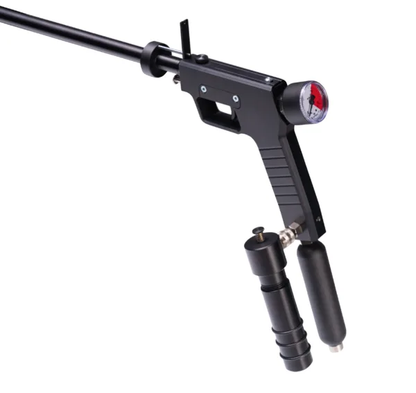 This injection applicator is available as a CO2 charged pistol or as a air charged pistol.  Both models include a barrel in the caliber of your choice (if you are using Pneu-Dart Darts you will require the 13mm barrel). It can be plugged together very rapidly.